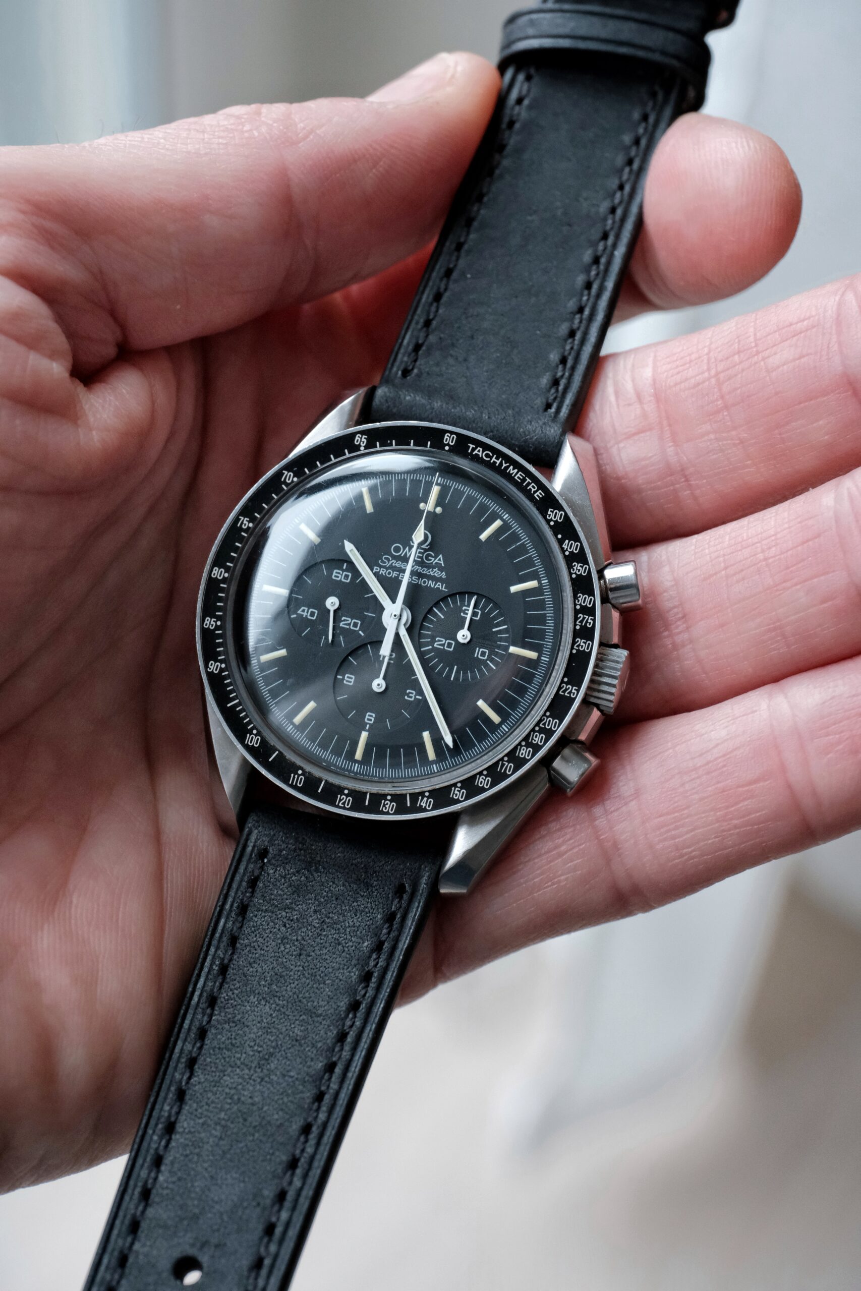 Klockband i läder. Mjuka och följsamma med matchande kantfärg.